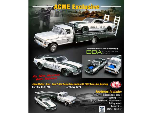 Allan Moffat *Brut* Trans Am Mustang #33 on a Ford F-350 Ramp Truck. 1969